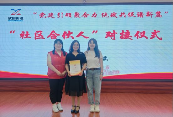 民生家园社区书记郭可嘉为公司颁发“社区合伙人”聘书。