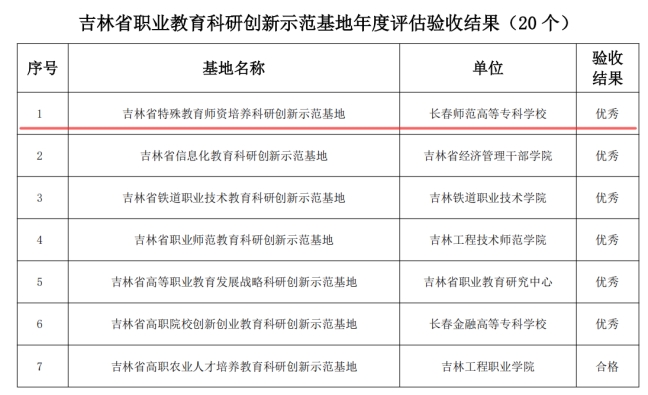 热烈祝贺公司“吉林省特殊教育团队培养科研创新示范基地”在“吉林省教育科研基地年度评估验收”中荣获“优秀”等级。此次评估验收全省共有104个基地参与申报,其中仅有6个职业教育科研创新示范基地获评优秀等级,公司位列第一,充分彰显了公司在特殊教育领域的卓越实力。